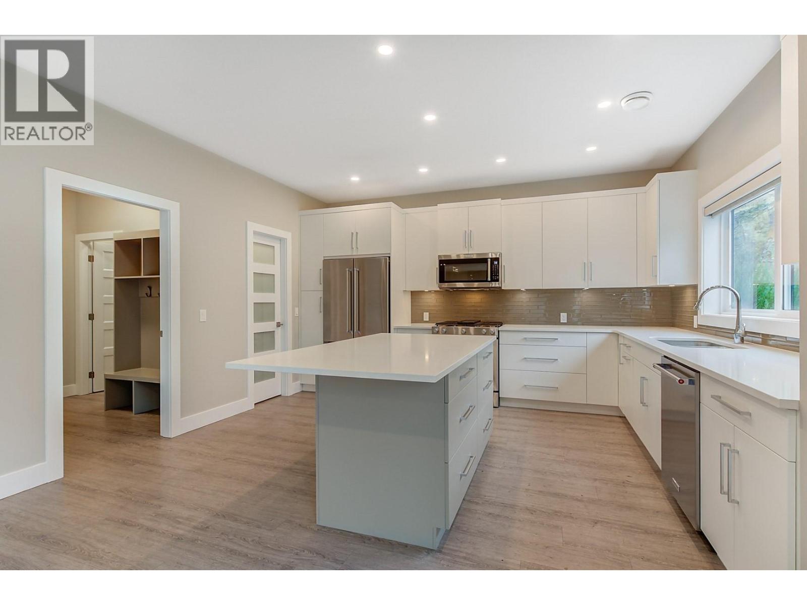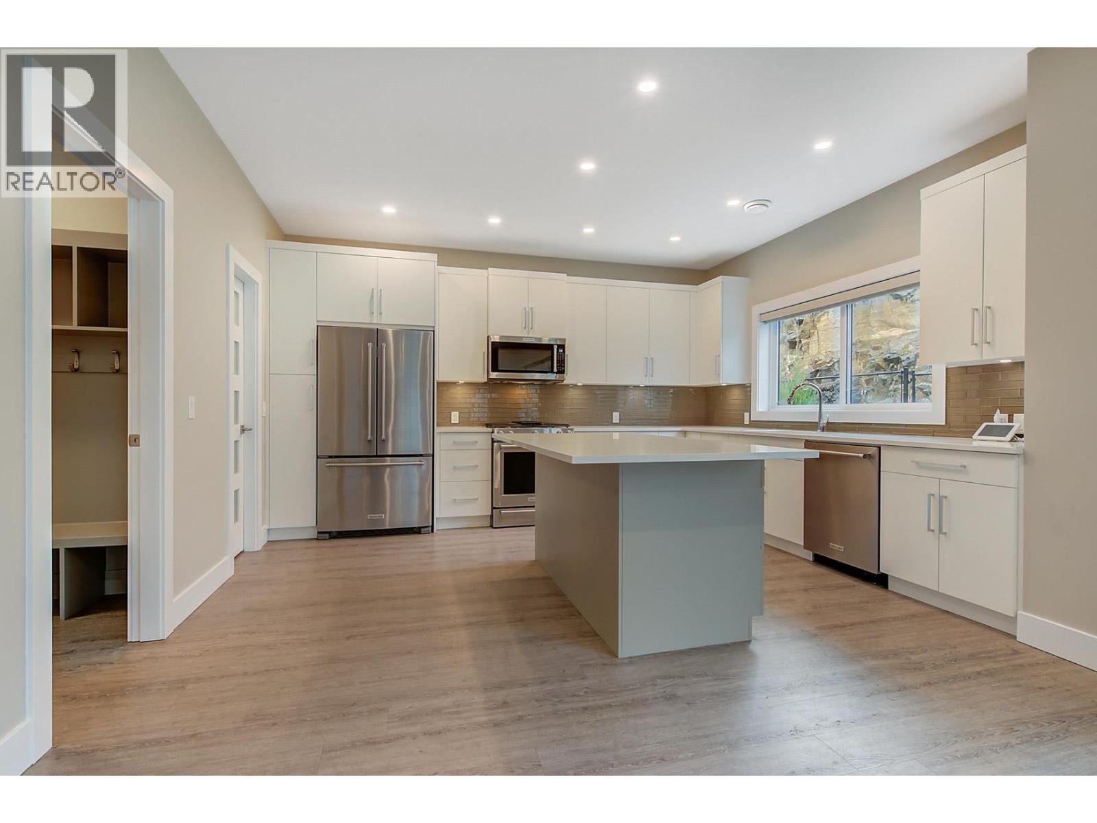 This 2-storey, grade-level entry house built by Ovation Homes is in the highly desirable University Heights community. Just a 10-minute walk to Aberdeen Hall and 15 minutes to UBC Okanagan, it offers the perfect balance of proximity to educational institutions and easy access to the airport. Ideal for professionals or families, this home combines luxury, comfort, and convenience. The main floor features a custom-designed kitchen with a large central island, abundant cabinets, and a spacious walk-in pantry. The adjoining dining area comfortably accommodates a full-size table, perfect for gatherings. The elegant living room boasts a floor-to-ceiling fireplace, adding warmth and charm to the open-concept design. A mudroom off the oversized double garage includes a walk-in closet and built-in storage. A versatile flex room, ideal as an office or guest room, and a full bathroom complete the main level. Upstairs, you will find three generously sized bedrooms and a well-appointed laundry room. The primary suite is a luxurious retreat, with a spa-like ensuite featuring a soaker tub, dual vanity, and walk-in tiled shower. A cozy sitting room off the primary bedroom is the perfect spot to relax and enjoy beautiful valley views. Custom finishes, including quartz countertops, vinyl plank flooring with cork backing, tile accents, and KitchenAid appliances, make this home truly exceptional. With its prime location and exquisite design, this is the perfect place to call home. (id:4069)